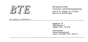 Wir starteten in Forschungsprojekten und gründeten BTE in Hannover als Uni-Spin-off. Helmut und Wolfgang waren viel gefragt, ich habe ihnen den Rücken freigehalten und alles abgearbeitet. Die Aufträge kamen überwiegend aus den Ministerien, im Vordergrund standen Forschungs- und Modellvorhaben, z. B. zur Bewertung der Wirkungen von Umweltschäden für den Tourismus. Gearbeitet wurde zunächst zuhause, 1990 zogen wir dann als Start-up ins Hannoversche Technologie-Zentrum. Unsere ersten Aufträge waren die Gästebefragung Bad Zwischenahn und das Regional-Entwicklungskonzept Soltau-Fallingbostel.